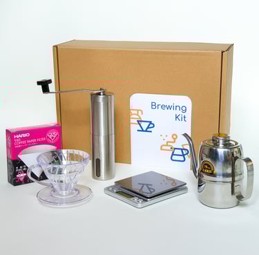 Kick start your coffee brewing journey with this affordable brewing kit! Featuring 6 essential tools for crafting the perfect cup. For a coffee enthusiast who are just starting your journey, this kit promises a great brewing experience every time.